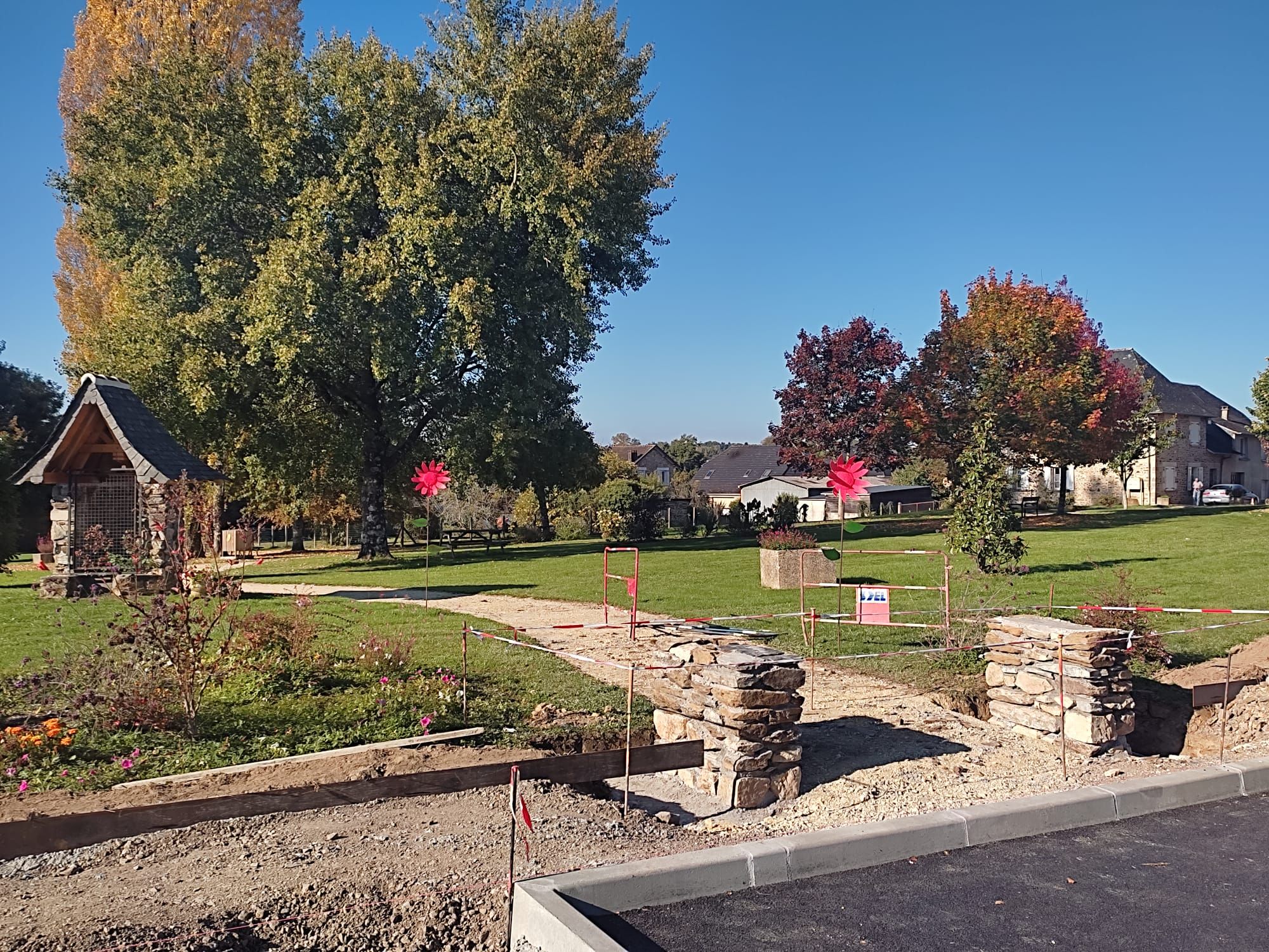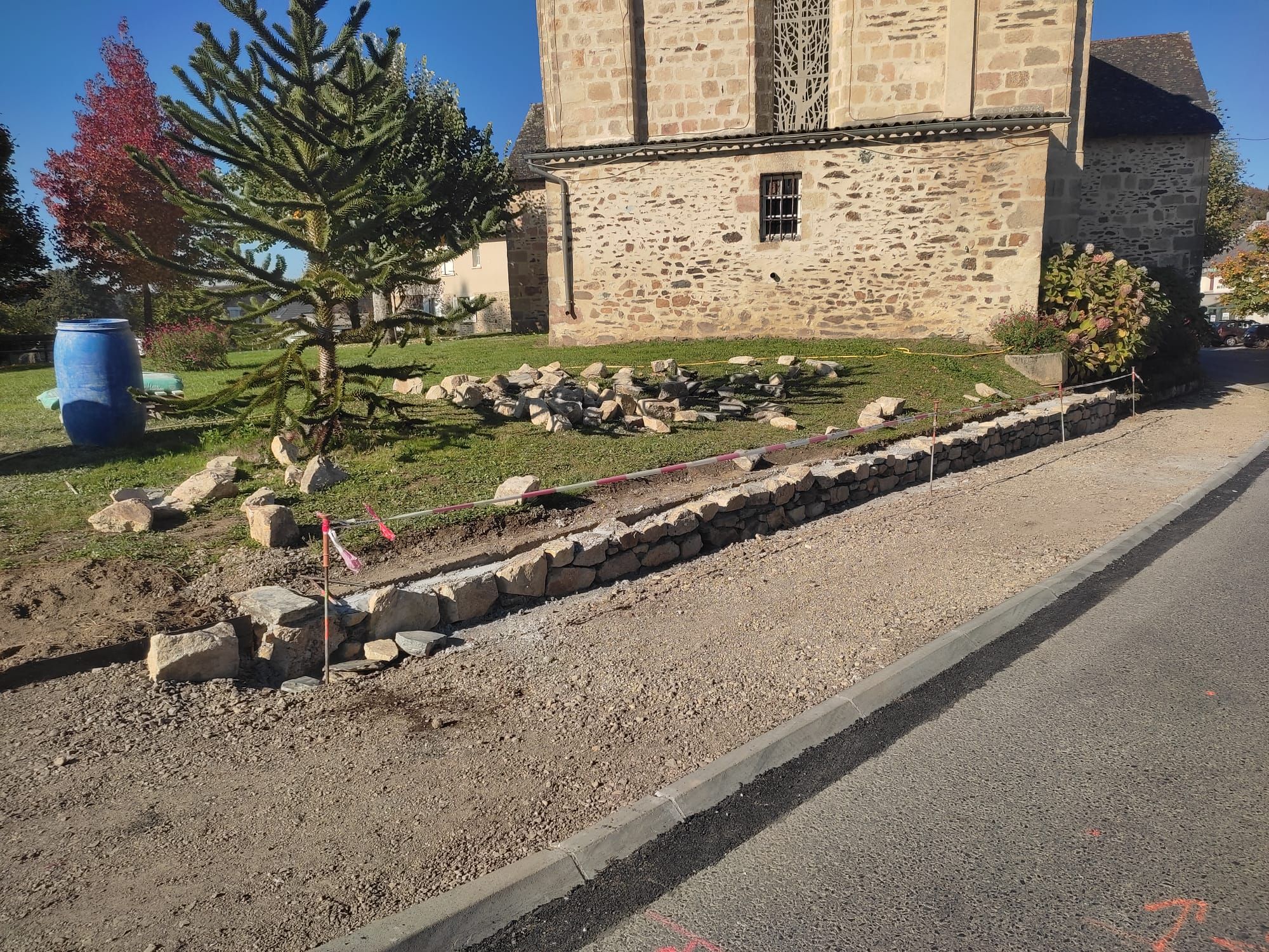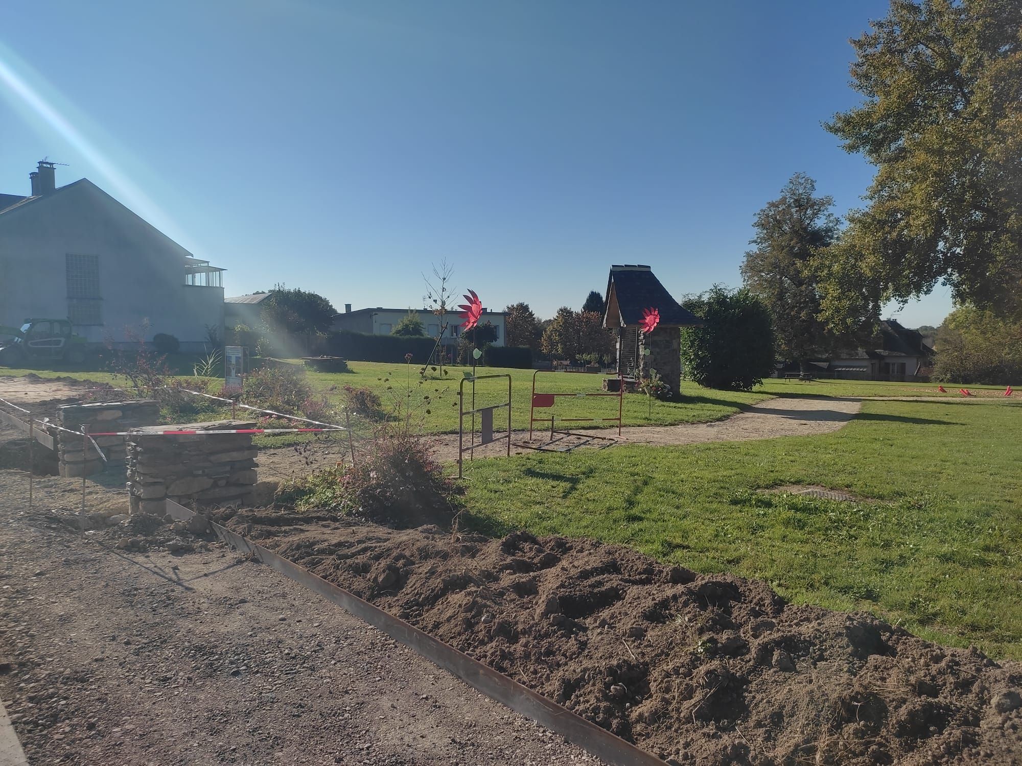 Les travaux d’aménagement aux abords du parc de l’église (création d’un véritable sentier piéton et PMR lié au sentier du parc, aménagement de places de stationnement y compris PMR, aménagement paysager) avancent bien.